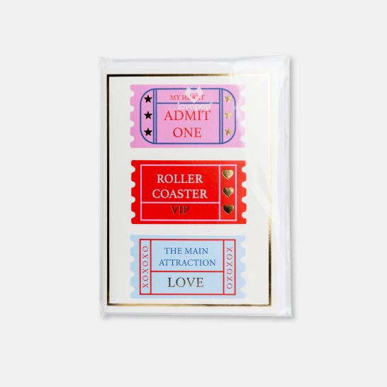 labeled “Admit One”, “Roller Coaster VIP”, and “The Main Attraction: